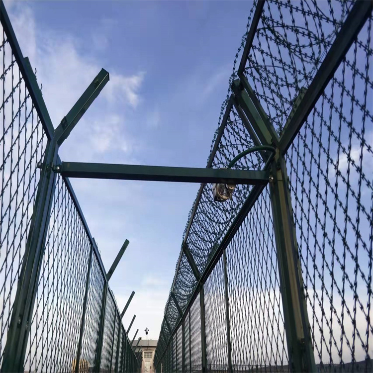 監獄看守所防逃隔離網的參數:立柱:80*80*2.5mm(塑后);邊框:30*50*1.5mm(塑后);網片:2.5-4*3米;網孔:50*50mm   50*100mm  75*150mm;底盤:150*150*8mm;表面處理:浸塑 噴塑 鍍鋅處理;刀刺:500mm圈徑蛇腹型刀刺網。