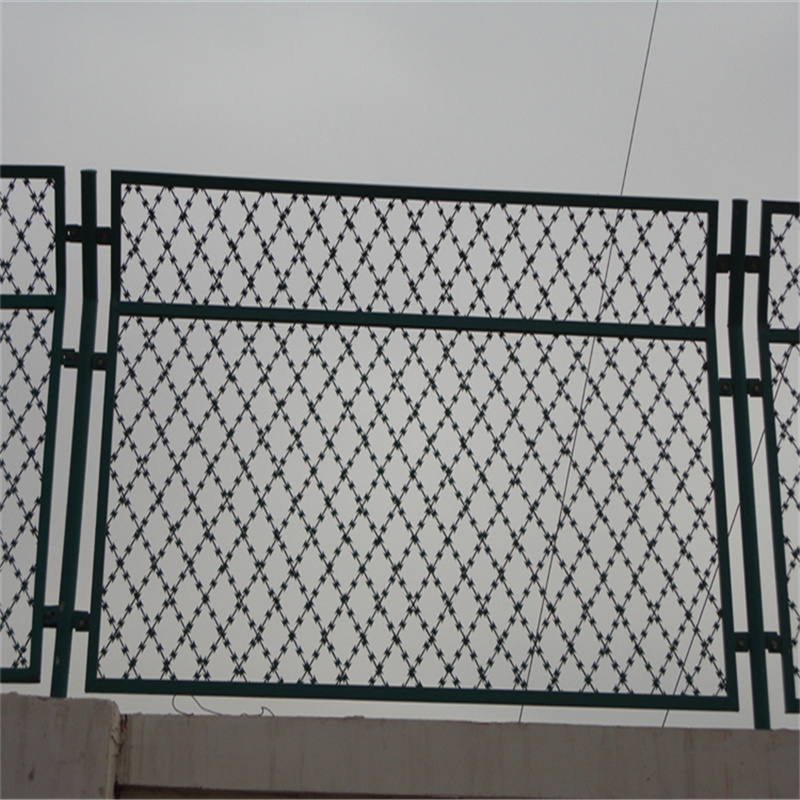 2)在監獄鐵絲護欄網的頂部安裝刀片大大提高了監獄鐵絲護欄網的阻嚇效果,而總成本并未增加太多。