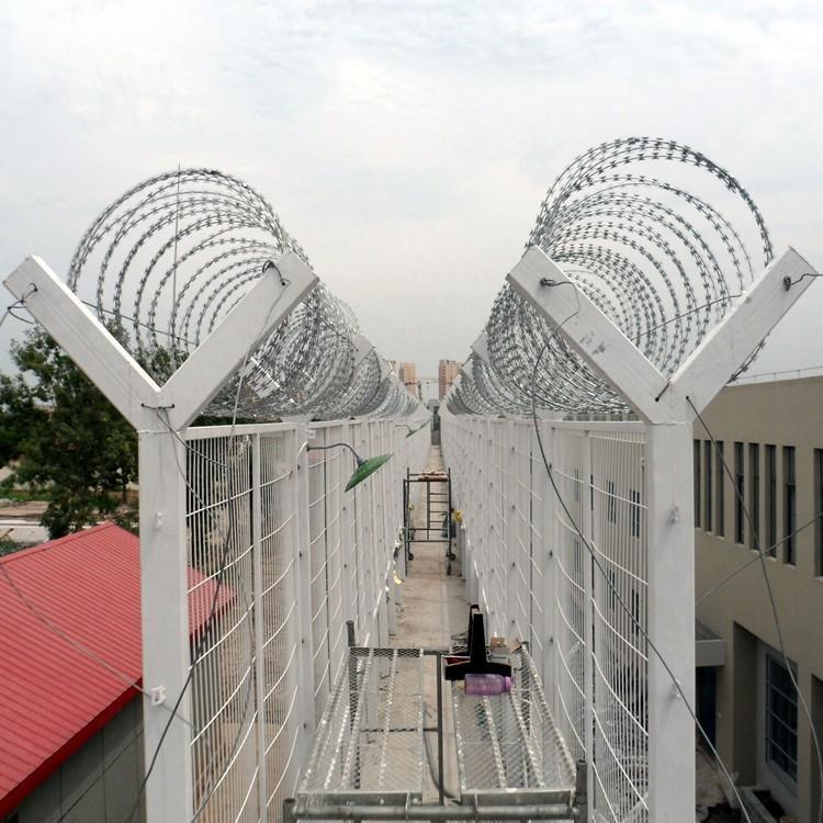 監獄看守所巡邏道防護網用途:用于監獄、看守所、拘留所、戒毒所、軍事禁區、邊防線等高安全場所。 監獄隔離網具有結構新穎、堅固緊密、網面平整、網孔均勻、刀鋒銳利、防攀爬防腐蝕性強等特點。