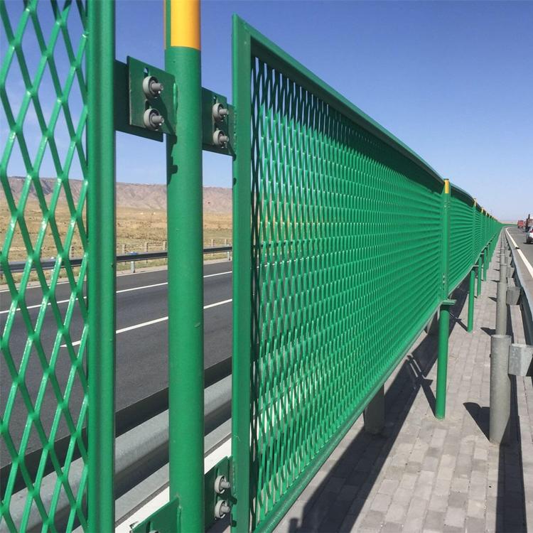 高速公路隔離柵采用鋼板網為主體,附以邊框以加強其整體性能并便于安裝,達到快速組裝的安裝目的。用的這個鋼板網就是防炫目網,也就是平時說的防拋網、金屬板網、鋼板拉伸網、金屬擴張網、鐵板網等。它的制作過程簡單的來說是金屬板經由沖剪機裁剪沖壓,形成網狀的張料物體,由于這種鋼板網的獨特構造,能夠改變光線直射過來的方向,使車輛和燈光一部分被阻擋,一部分被改變方向,只有少數部分被傳遞到人的眼睛里,起到了防止眼睛眼暈的作用。這樣既可以隔離上下行車道,又能有效的保障防眩設施的連續性和橫向通視,達到防眩、隔離雙重目的,是一種非常合理的高速公路護欄網產品。