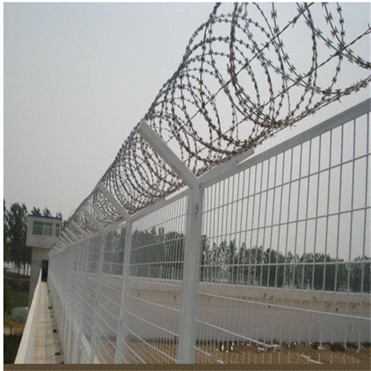 監獄防攀爬隔離網安裝在監獄的高墻內外兩側、各個功能區域等等,是監獄安全防護的重要設施之一。監獄防攀爬隔離網的頂部一般都要搭配刀刺滾籠,這樣的組合的優勢是非常明顯的。
