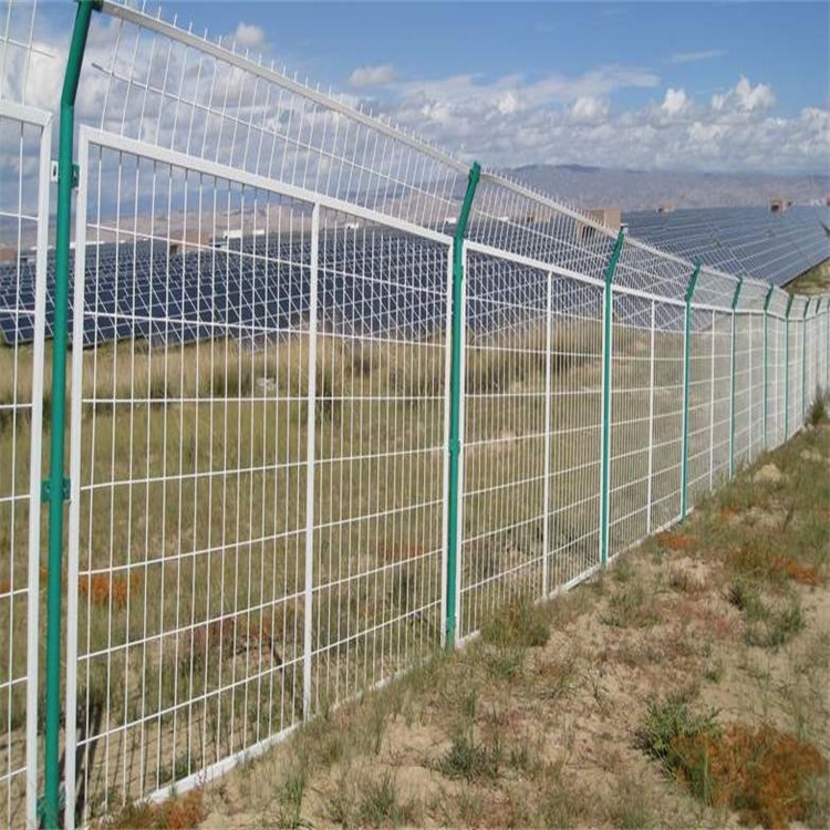 光伏電站圍欄網是由高強度低碳鋼絲焊接而成,后經高溫熱浸塑處理,具有一定的耐腐蝕效果,不易生銹。