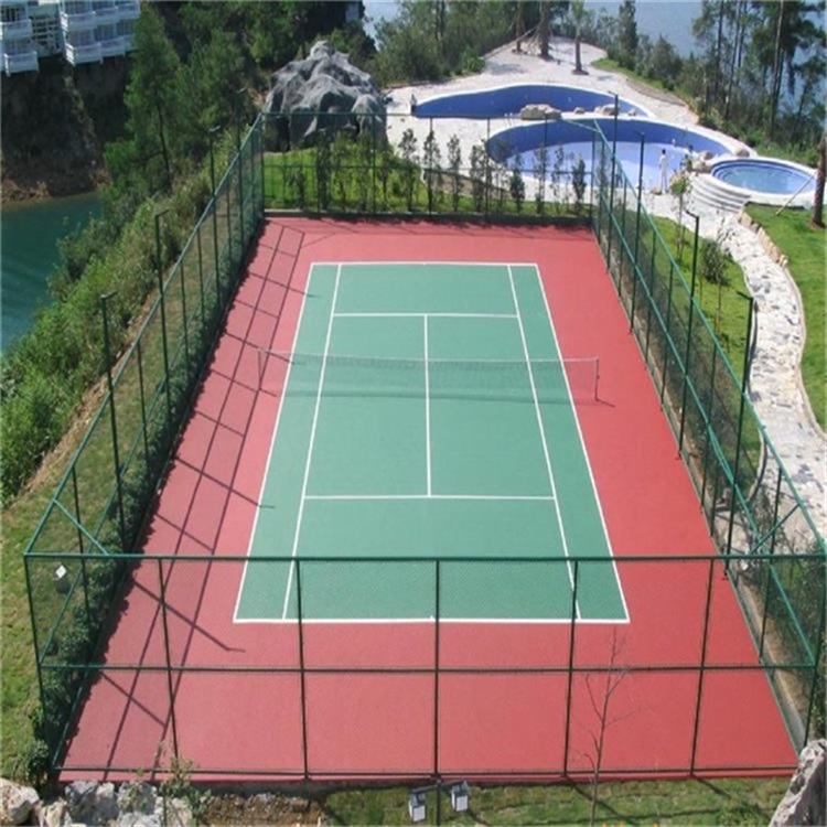 (4)油漆:特制網鋼管專用之油漆作底漆,外噴兩層墨綠色面漆。油漆工藝采用噴涂方式,先將鋼管及扁鐵表面除銹打磨、清潔,再噴涂防銹底漆一層(較厚,均勻)及高級色彩面漆二層,待圍網施工完畢再全面檢查修補碰花及破損部分油漆及其他缺陷;