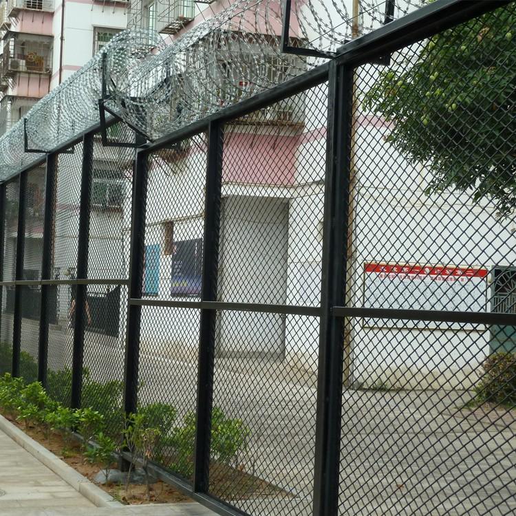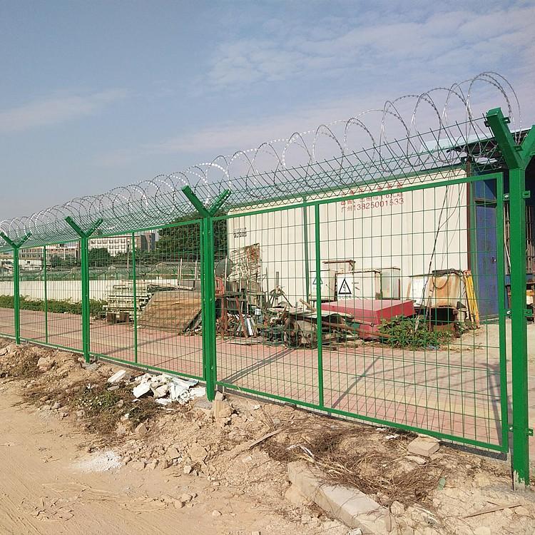 監(jiān)獄隔離網(wǎng)墻頂部按照要求安裝蛇腹形刀刺網(wǎng),立柱頂部的V型直接兩個(gè)側(cè)臂焊接有專用的刺網(wǎng)勾,是每個(gè)側(cè)架設(shè)三道熱鍍鋅鋼絲,形成一個(gè)v型槽,然后把刀刺網(wǎng)放到上面,再用配套卡扣把鋼絲和刀刺網(wǎng)連接到一起,如果v型架內(nèi)安裝V型網(wǎng)架,安裝就更簡(jiǎn)單了,直接把刀刺網(wǎng)連接到v型網(wǎng)上面就可以了。