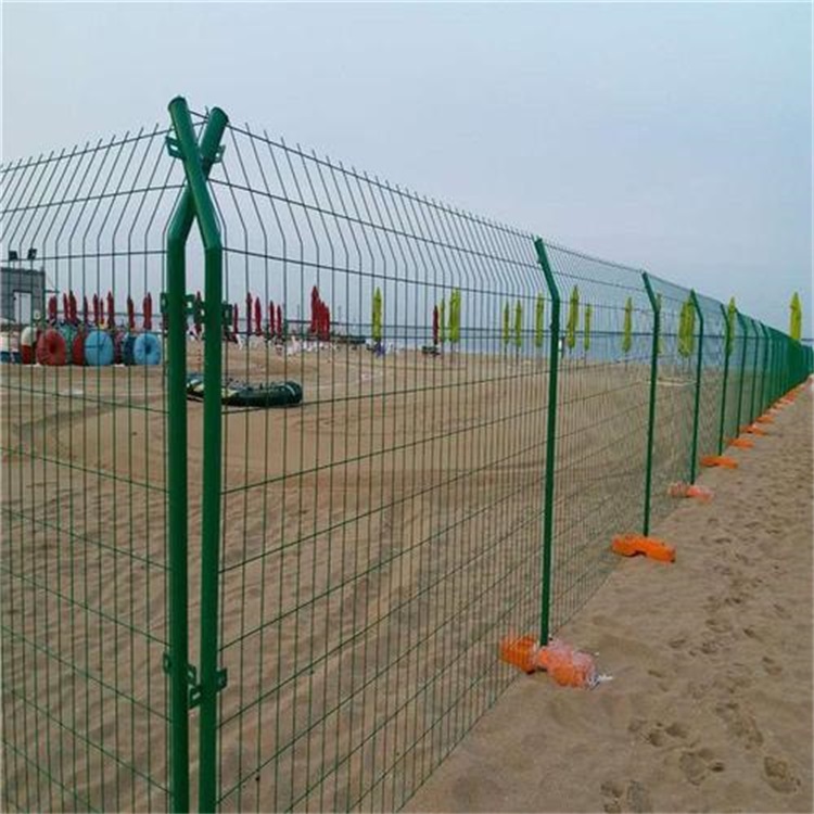 光伏網圍欄-雙邊絲護欄網:這種是常用的,絲徑3-4mm、孔徑6*15cm、7*15cm、網高1.8-2.2m、網寬3m、立柱用48圓管。如果您的廠區面積比較大,預算方面有限的話,建議您使用雙邊絲護欄網,性價比高。