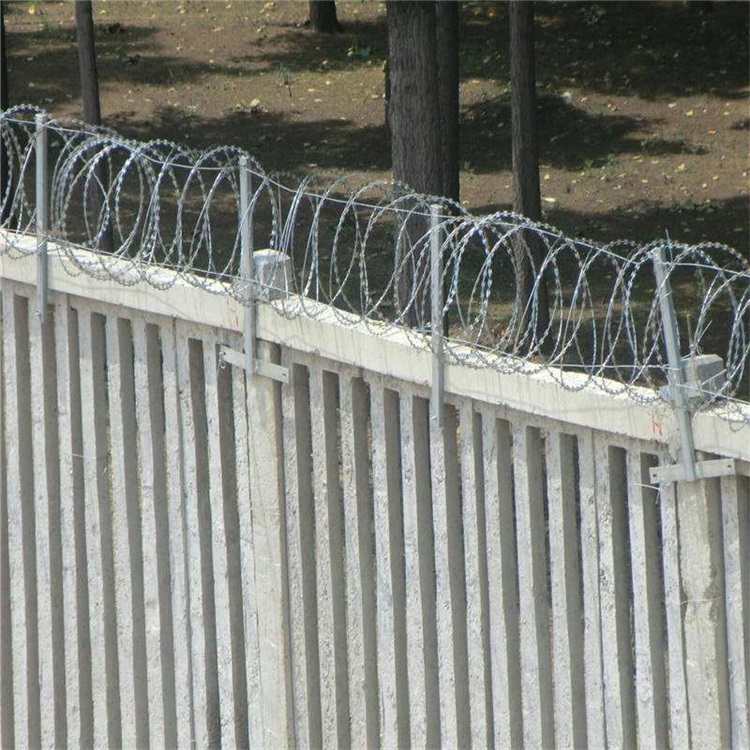 特點(diǎn):刀片刺網(wǎng)又名刮刀型刺絲,是一種近年發(fā)展起來(lái)的防護(hù)、隔離能力較強(qiáng)的新型防護(hù)網(wǎng)產(chǎn)品。鋒利的刀型刺由雙線(xiàn)扣裝后成蛇腹?fàn)睿让烙^(guān)又讓人不寒而栗。起到了很好的阻嚇作用。同時(shí)該產(chǎn)品具有美觀(guān)、阻效果好、施工便利等優(yōu)點(diǎn)。