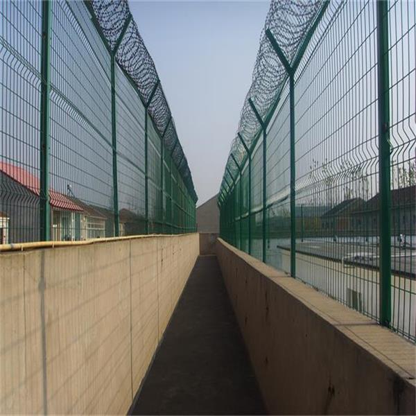監獄巡邏道鋼網墻由鋼絲或鍍鋅絲網片、立柱、刀片刺網組成,具備抗銹,抗剪切、防攀爬功能,巡邏道鋼網墻設計建設應美觀、實用;蛇腹形刀刺網刀片鋒銳防銹,外形有直接的震懾作用。