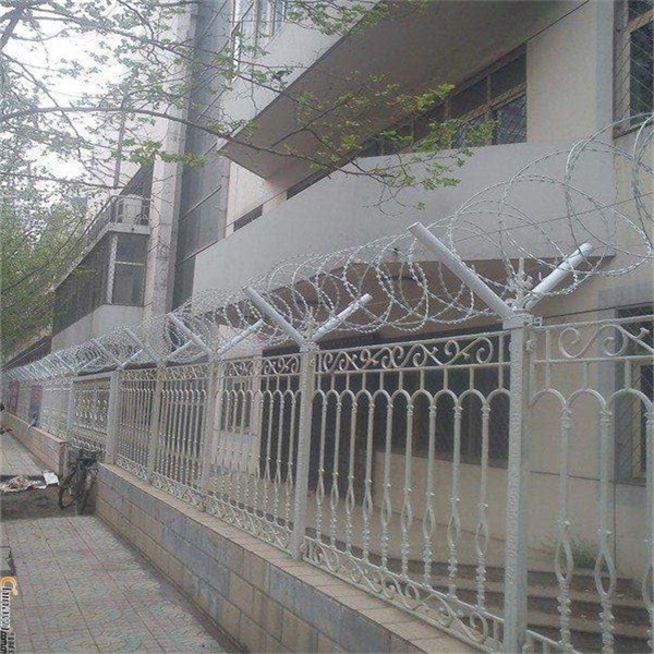 螺旋型交叉式刀片刺繩實(shí)在兩條刀片刺繩之間以不銹鋼片和鍍鋅鋼片強(qiáng)力夾合,展開(kāi)之后集成交叉裝,美觀且具有一定的阻嚇效果。