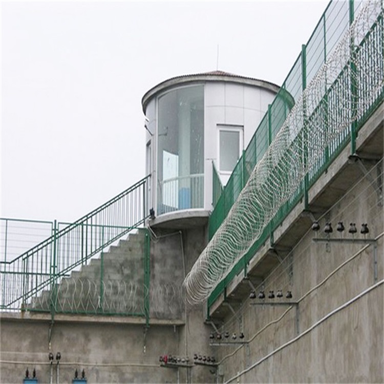 刀片刺繩隔離網(wǎng)和蛇腹形刀刺網(wǎng)組成監(jiān)獄防護網(wǎng)