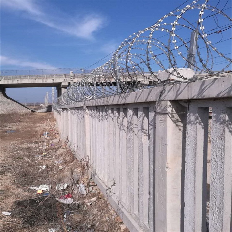刺絲滾籠產品應用 :鐵路柵欄一改往日焊接鋼絲網柵欄、刺絲網柵欄等產品,改為防御性更強、壽命更長久的:鋼筋混凝土柵欄+0.5米高刺絲...與防護柵欄采用支架抱箍連接。 (4)、刺絲滾籠的下緣距離鋼筋混凝土防護柵欄上緣的垂直距離為0.05m。 [ 查看詳情 ]