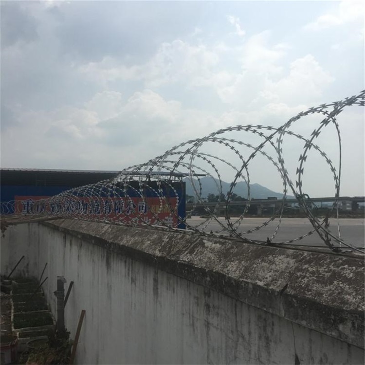 警戒線隔離網 實例規格分析:警戒線隔離網一般用于監獄、看守所、戒毒所、武警中隊獄墻內外5m處,或者巡邏道頂部。整個警戒線隔離網系統是...5mm,刀間距35mn。雙螺旋,直徑中500mm,密度12圈/米,圈距排列均勻,相鄰每圈間距不大于100mm。 [ 查看詳情 ]