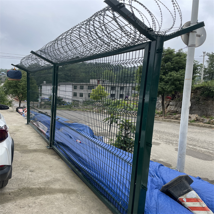 防攀爬刺網(wǎng)圍欄 常用樣式和不同安裝方式: &nb...等機(jī)關(guān)單位。下面是2m左右的金屬鋼網(wǎng)頂部加上蛇腹形刀刺網(wǎng),形成一道封閉型防攀爬刺網(wǎng)。安裝方式是澆灌固定和立柱底部打膨脹螺絲固定。 [ 查看詳情 ]