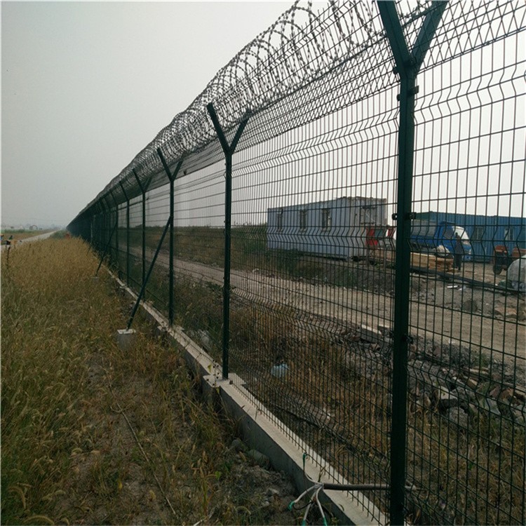 機(jī)場(chǎng)焊接網(wǎng)隔離柵上面我們安裝上鋒利的蛇腹?fàn)畹镀叹W(wǎng),刀片刺網(wǎng)有著鋒利的刀片,是采用鍍鋅板或不銹鋼經(jīng)刀片刺網(wǎng)沖壓機(jī)沖壓,再和高張力鋼絲做芯線組合而成。既美觀大方,又使人不寒而栗。以前經(jīng)常被人們應(yīng)用于圍墻之上,以防止人們翻越圍墻。現(xiàn)在已經(jīng)被人們和護(hù)欄網(wǎng)完美的結(jié)合,稱為“刀片刺網(wǎng)防護(hù)網(wǎng)”,大家可以想象一下,高高的互聯(lián)網(wǎng)本來就不是那么好翻越的,在加上上面有那鋒利的刀片,想想連手都沒有地方放,更不要提爬上去并翻過刀片刺網(wǎng)了,那可以說是不可能的事情了。