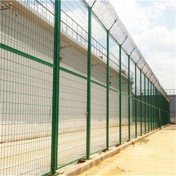 監獄警戒區隔離網墻設計要求整體連貫一致,框網方正,對角線誤差不大于2cm。 隔離網網頁安裝離地距離5-8cm,框網與立柱采用螺栓固定邊耳式連接網頁每邊與立柱連接點不少于六處。
