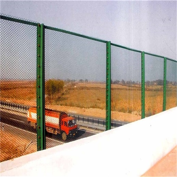 高速防落網是公跨鐵橋梁的防拋物裝置,高度在1.2到2.5米,要求強度較高,防腐防銹能要強,目前國內鐵路沒有統一執行的圖紙和標準,根據業主方和設計院的溝通而定。一般高速鐵路防落網立柱為槽鋼100乘45乘4.0、邊框為角鋼50乘50乘3.0、配鋼板網或編織網、網孔5mm乘5mm、40乘40mm等規格。表層處理:熱鍍鋅 熱浸塑顏色有草綠、墨綠、藍色、白色等顏色。防腐防銹能力達20年。免去了后期維護的費用開支,受到廣大高速公路鐵路業主和施工方的認可和好評。