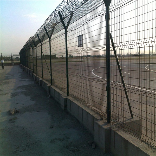 Y型機場圍界網頂部裝有刀片刺絲和刀片刺繩,安全保護功能將得到很好的加強。其產品外形美觀,顏色多樣,不僅起到圍欄的作用,還起到美化的作用。