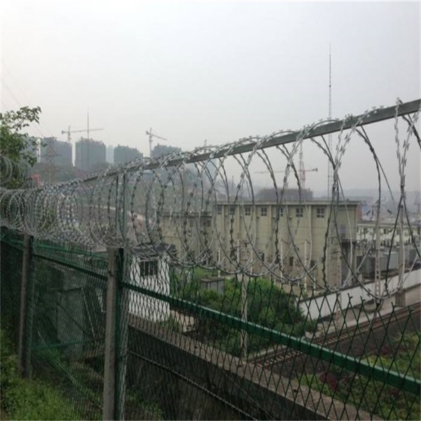 圍墻防護刀刺滾網也稱為刀片刺絲、刀片刺網,是一種新型防護網。由銳利尖角鍍鋅鋼板或不銹鋼薄板做刀片,高張力鋼絲做芯線組合而成的阻絕器材。電泳的圍墻安全防護刀刺滾網是將做好的刀片刺網再進行噴塑表面處理,使得刀片刺網與外面空氣形成一種具有隔離層的空間。該產品具有嚇阻效果好。美觀。施工便利。經濟實用等優異特點。主要用于園林公寓。機關單位。監獄。哨所。邊防等的圈禁防護。