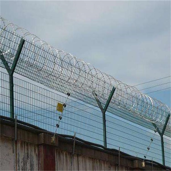 另外一種圍墻加高護欄網常用在監獄、看守所、巡邏道等地。選擇這類注意就是底盤或墻側螺栓和邊框立柱的選擇。絲的粗度和管的厚度都要整體協調。也不是越厚越好,有的時候越厚反而不好安裝。