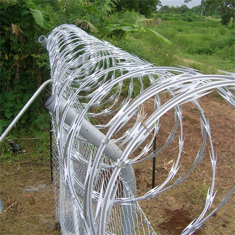 刀片刺網(wǎng)是片狀刀型帶刺鐵絲繩制作之后,經(jīng)過生銹的防護加工而形成的,外圍應(yīng)該有很好的防銹作用,外圍加工應(yīng)該美觀,并且能很好的實用價值,安裝起來更加方便,性價比較高一些等優(yōu)點。