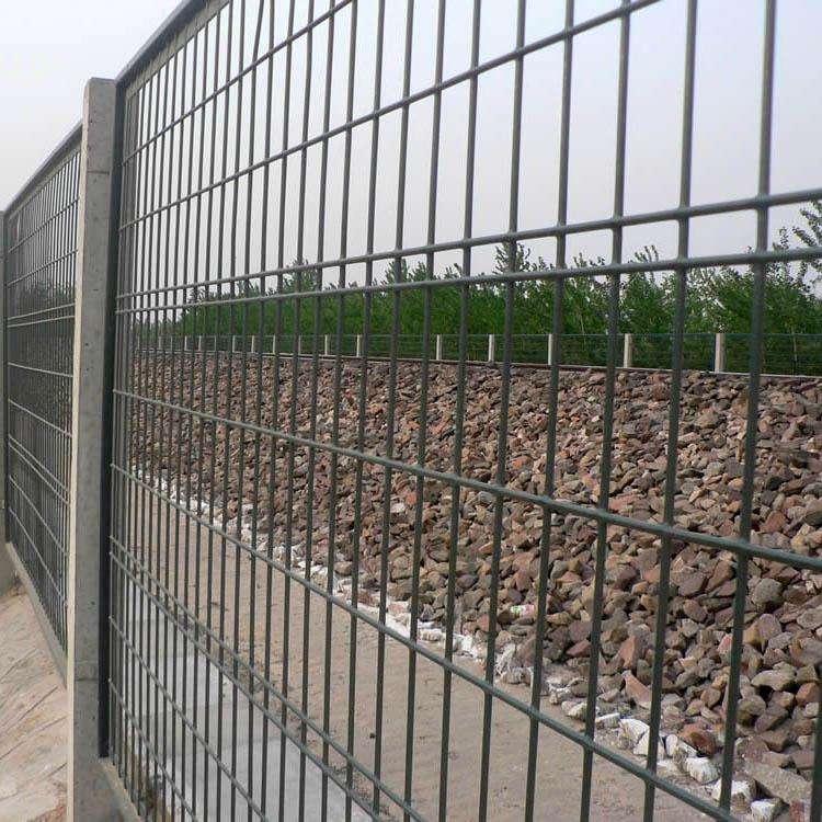 貨運鐵路隔離柵欄的外型規格分別是2760mm*1790mm、2760*1700mm,由φ4.0毫米鐵絲焊接成網眼大小75*150mm的鋼絲網片,邊框由30mm*50mm*2.0mm鋼管制造外框,將網片和外框實行組焊,防腐處理為整體熱鍍鋅浸塑。產品組建十分簡單網片的連接件相連接,連接螺栓采用防盜效果的墊圈,防止被盜。