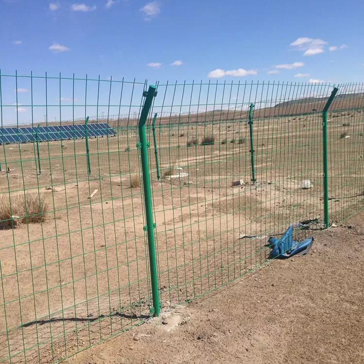 1、光伏電站圍欄網規格一:絲徑:塑前內絲≥4.0mm,塑后≥5.0mm,做加強彎三道,30°防爬灣部分,0.2m高;孔徑:75*150mm,焊接牢固、網孔均勻、網邊整齊、無焊傷、無焊漏現象。焊接部位要求過度圓滑,無夾縫、虛焊、氣孔等焊接缺陷;立柱:圓管48*2.0 mm(塑前),圓管塑浸前厚度≥1.9mm;其中直立部分2.2m高,30°防爬灣部分,0.2m高,立柱總高度2.4米;網高:1.8米,網寬:3米(柱中距離)