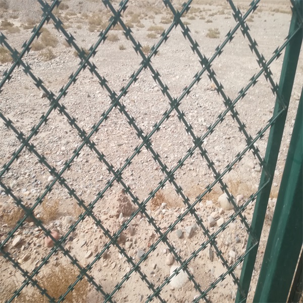 4:菱形刀刺圍欄網的連接采用8*2mm熱鍍鋅螺栓和防拆卸螺栓和立柱連接。