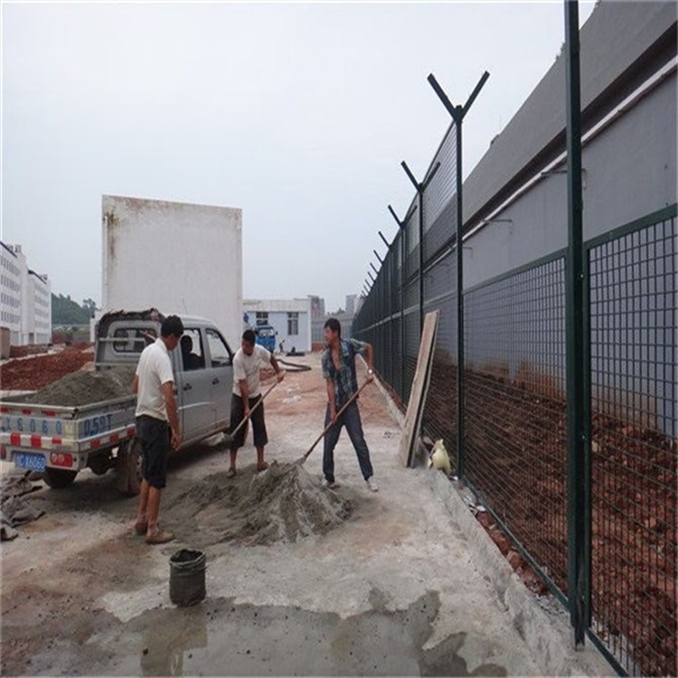 3、防攀爬v型網與蛇腹形刀刺網 防攀爬是監獄鋼網墻必須必備的特點,我們一般會在監獄鋼網墻頂端架設蛇腹形刀刺網。現在監獄架設的蛇腹形刀刺網型號為BTO-22型號,根據規定不同的地方架設的刀刺網圈經不一樣,一般有φ50cm、φ60cm、φ80cm。 固定蛇腹形刀刺網,需要在鋼網墻頂端行成一個V字型,一般有鋼筋焊接V型網和拉線構成V型。架設的時候采用特定的卡扣、按照規定的間距進行安裝就行。